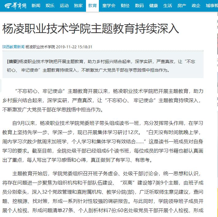 “不忘初心、牢记使命”主题教育开展以来,杨凌职业技术学院把开展主题教育,助力乡村振兴结合起来,深学实研,严查真改,让“不忘初心、 牢记使命”主题教育持续深入,不断激发广大党员干部在学思践悟中担当作为。
