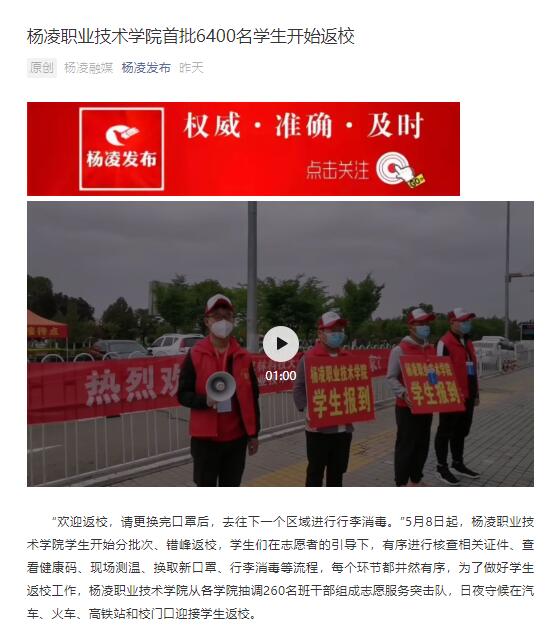 【杨凌发布】杨凌职业技术学院首批6400名学生开始返校