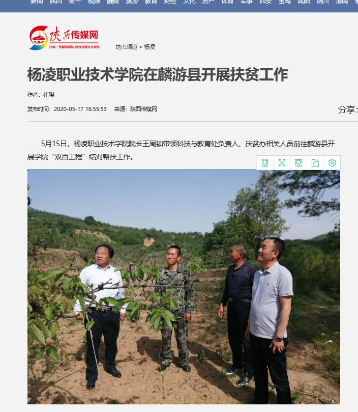5月15日,杨凌职业技术学院院长王周锁带领科技与教育处负责人、扶贫办相关人员前往麟游县开展学院“双百工程”结对帮扶工作。