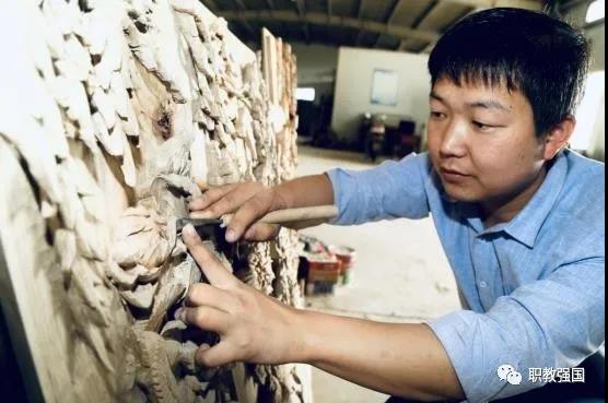 5月12日,杨凌职业技术学院实训基地一间工作室内,木雕艺术家吴文军正在为作品进行刻纹。两米多长一米多宽的木框上,他俯身前倾,左手做支撑状,右手臂纹丝不动,手腕轻转,手指攥住三角刀把沿着板中造型缓缓游走,一只飞鸟形象霎时间栩栩如生,仿佛要翱翔天际。