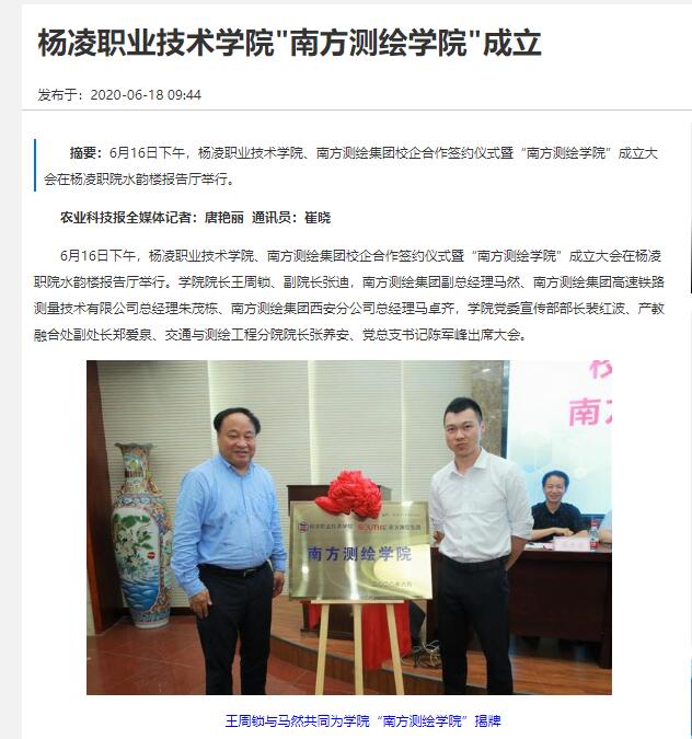 【中国农科新闻网】杨凌职业技术学院"南方测绘学院"成立