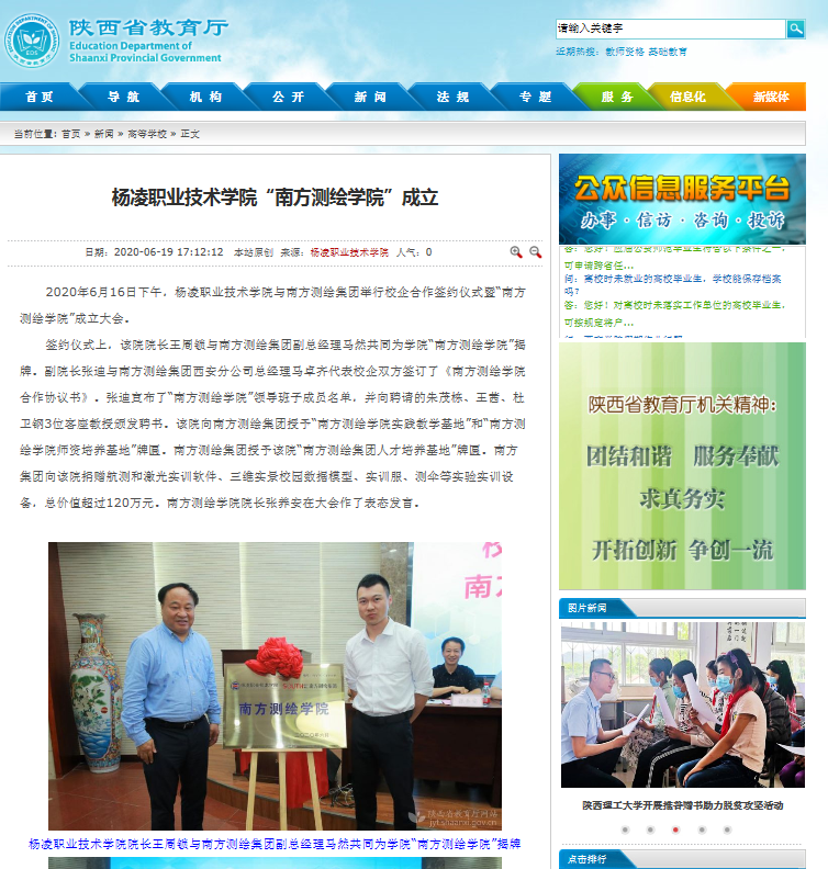 【陕西省教育厅】杨凌职业技术学院“南方测绘学院”成立