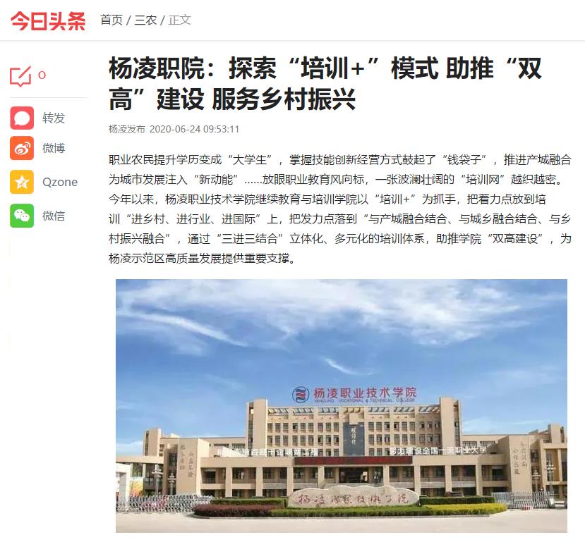 【今日头条】杨凌职院:探索“培训+”模式 助推“双高”建设 服务乡村振兴