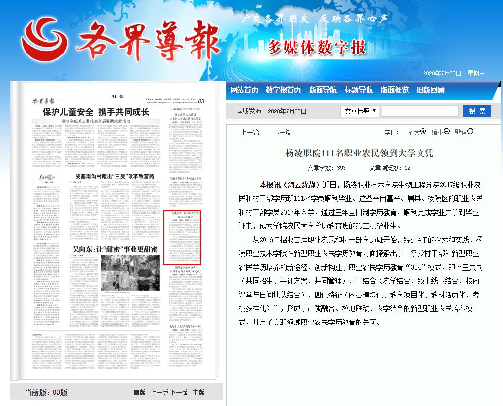 【各界导报】杨凌职院111名职业农民领到大学文凭