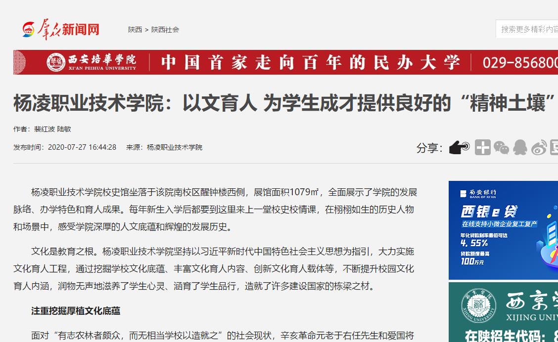 【群众新闻网】杨凌职业技术学院:以文育人 为学生成才提供良好的“精神土壤”