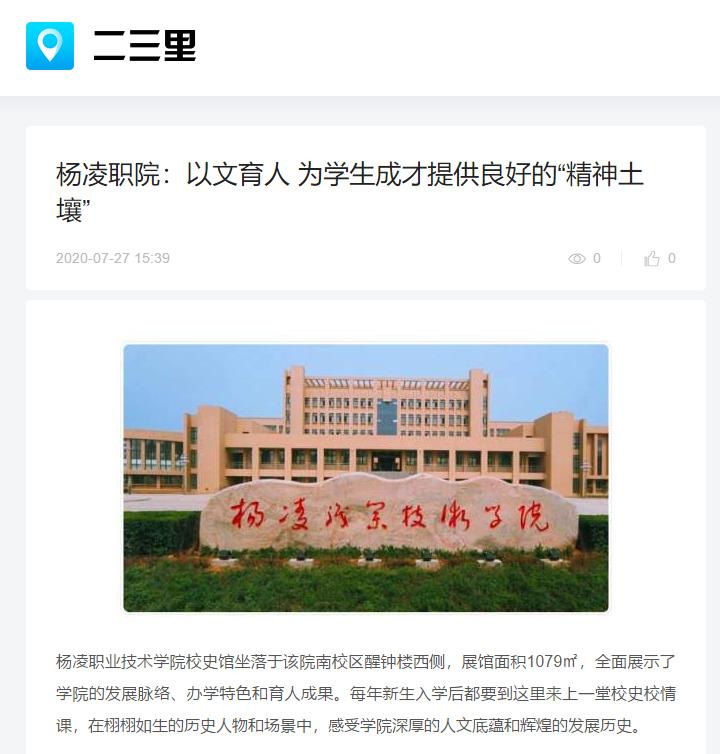 文化是教育之根。杨凌职业技术学院坚持以习近平新时代中国特色社会主义思想为指引,大力实施文化育人工程,通过挖掘学校文化底蕴、丰富文化育人内容、创新文化育人载体等,不断提升校园文化育人内涵,润物无声地滋养了学生心灵、涵育了学生品行,造就了许多建设国家的栋梁之材。