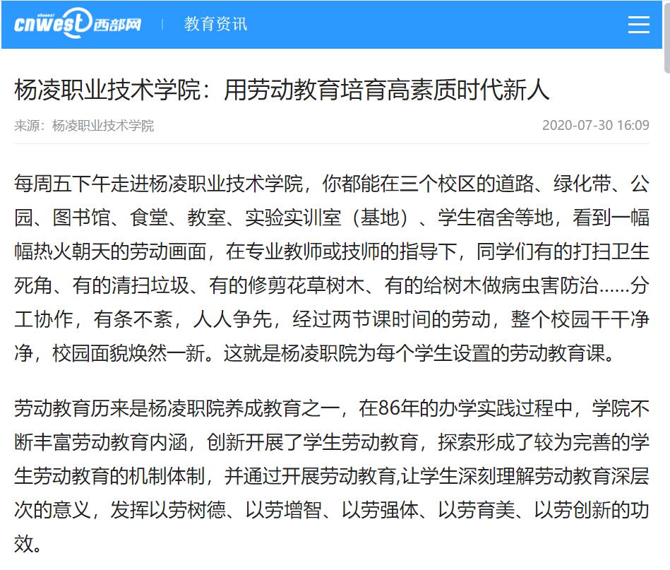 【西部网】杨凌职业技术学院:用劳动教育培育高素质时代新人