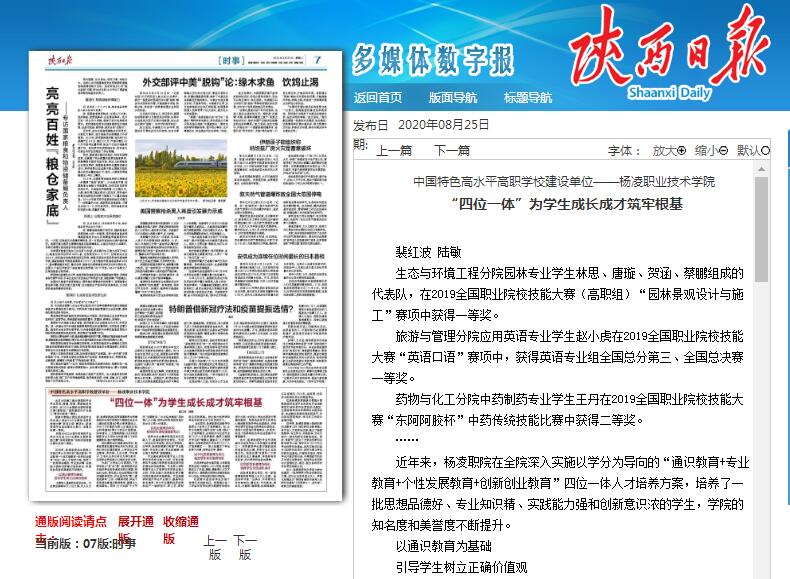 【陕西日报】杨凌职业技术学院 “四位一体”为学生成长成才筑牢根基
