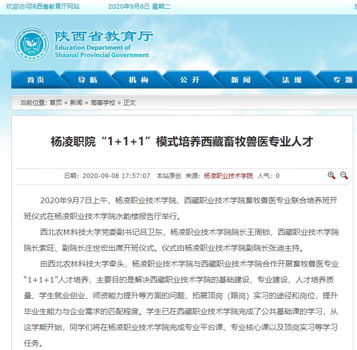 【陕西省教育厅】杨凌职院“1+1+1”模式培养西藏畜牧兽医专业人才