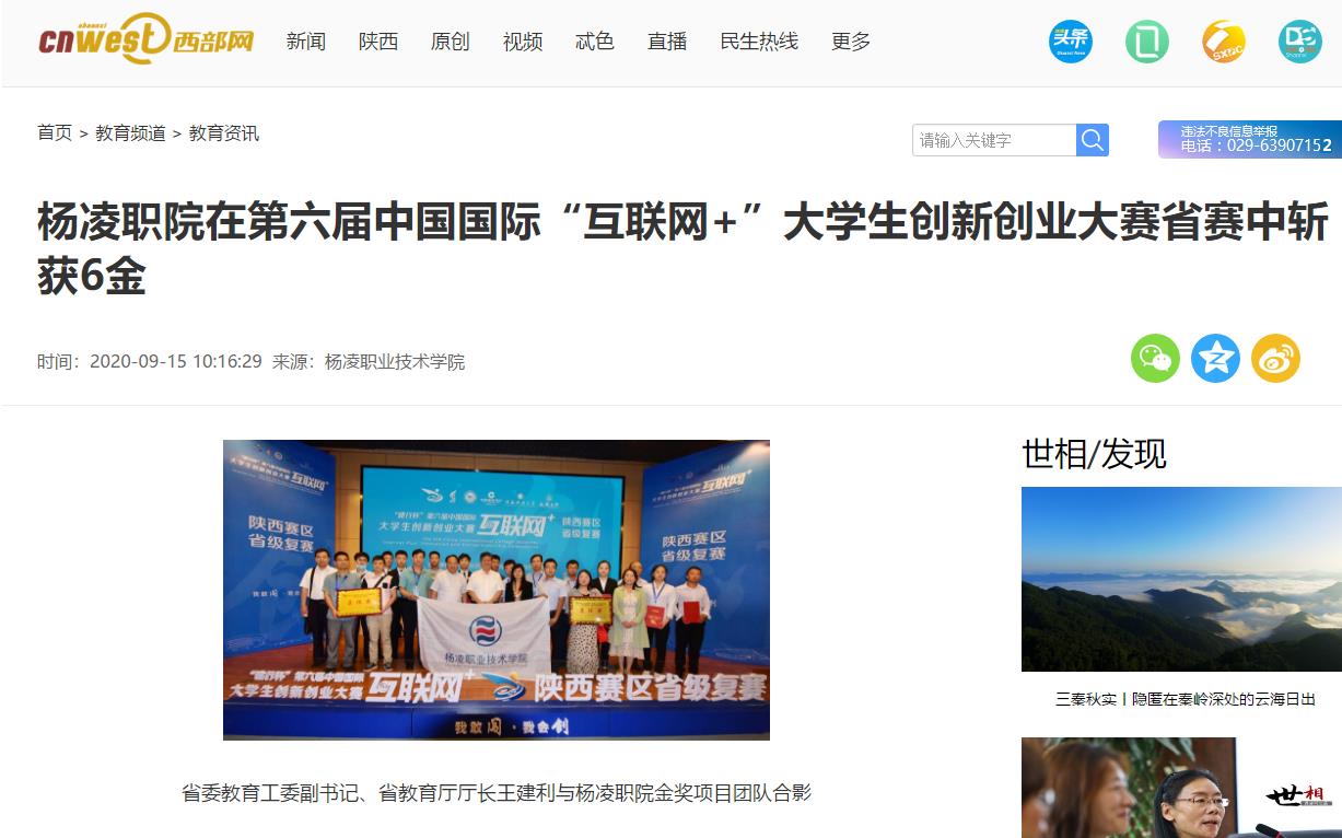 【西部网】杨凌职院在第六届中国国际“互联网+”大学生创新创业大赛省赛中斩获6金