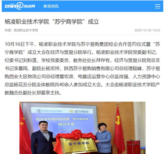 【陕西头条】杨凌职业技术学院“苏宁商学院”成立