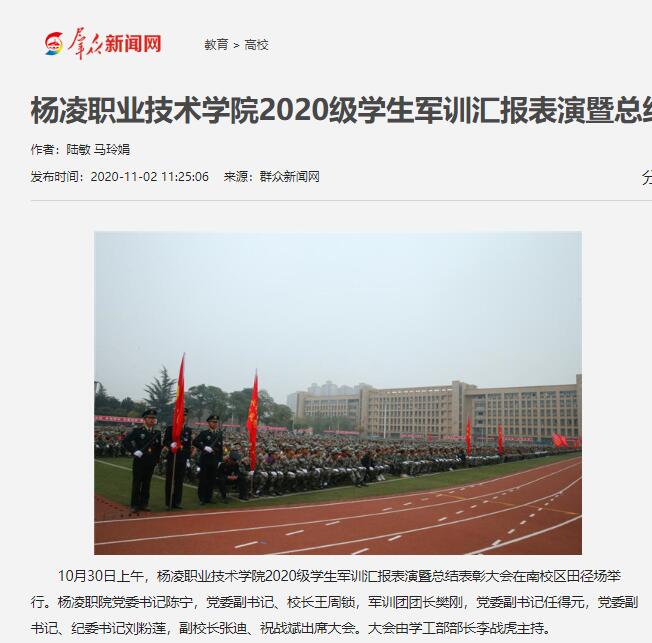 【群众新闻网】杨凌职业技术学院2020级学生军训汇报表演暨总结表彰大会举行