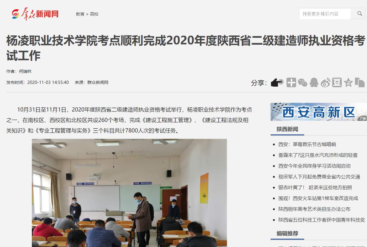 【群众新闻网】杨凌职业技术学院考点顺利完成2020年度陕西省二级建造师执业资格考试工作