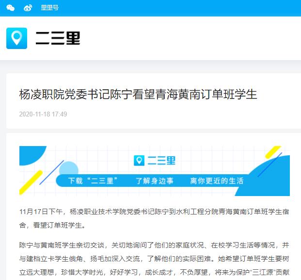 【二三里】杨凌职业技术学院党委书记陈宁看望青海黄南订单班学生