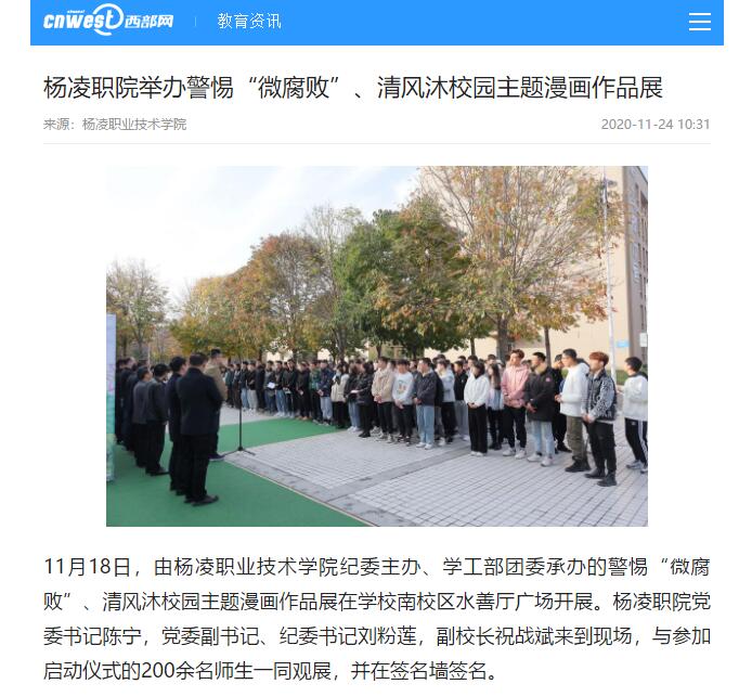 【西部网】杨凌职院举办警惕“微腐败”、清风沐校园主题漫画作品展
