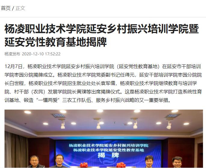【杨凌发布】杨凌职业技术学院延安乡村振兴培训学院暨延安党性教育基地揭牌