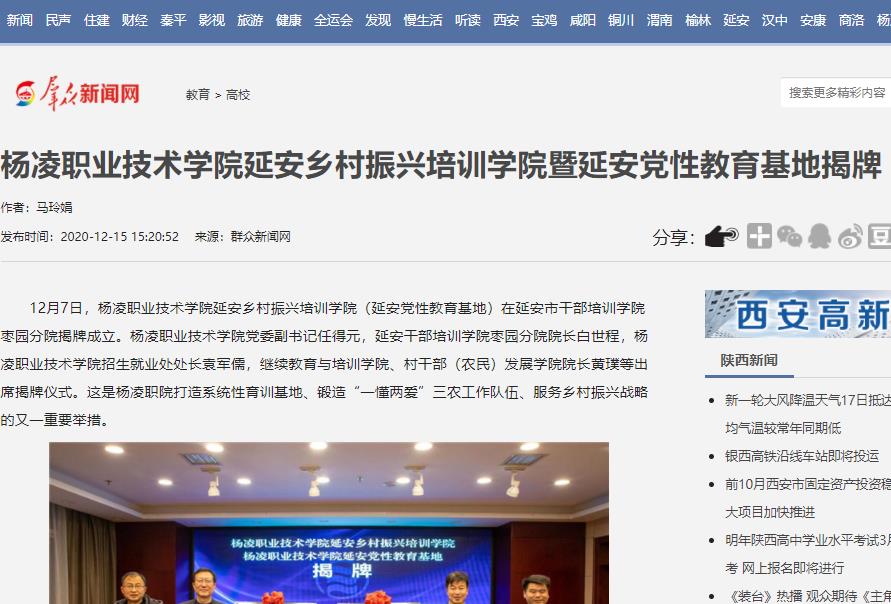 【群众新闻网】杨凌职业技术学院延安乡村振兴培训学院暨延安党性教育基地揭牌