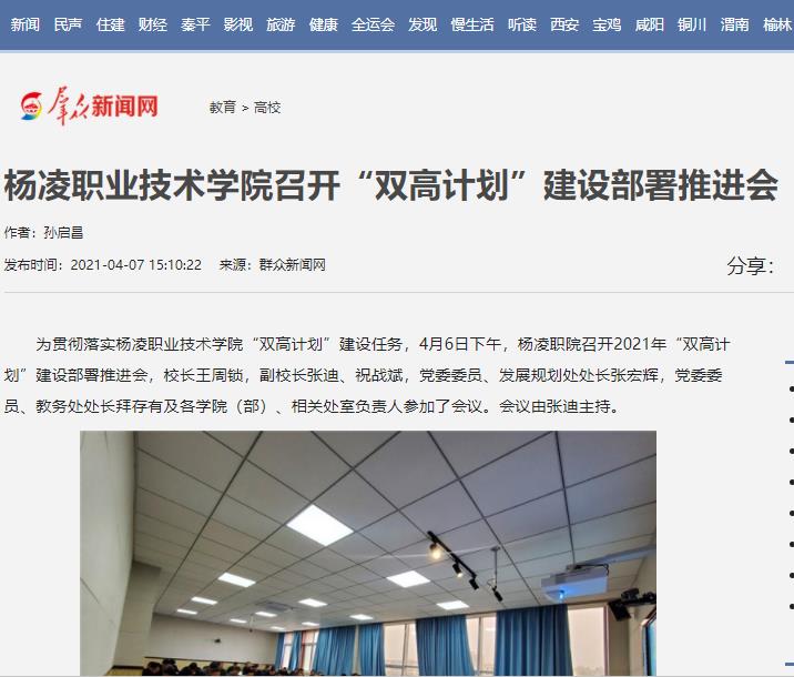 会议汇报了杨凌职院“双高计划”绩效监测平台填报情况,梳理了“双高计划”建设以来在工作中存在问题,并提出了解决方案,同时安排部署了2021年“双高计划”建设及“提质培优行动计划”任务工作。