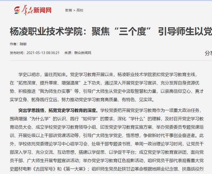 【群众新闻网】杨凌职业技术学院:聚焦“三个度” 引导师生以党史立心铸魂真学实干