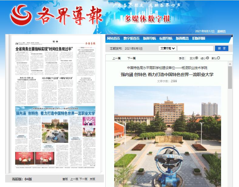 站在“十四五”开局的新起点上,杨凌职院将朝着建成“中国特色、世界一流职业大学”的奋斗目标不懈努力,继续为推进职业教育现代化和开展本科层次职业教育贡献“杨职实践”、提供“杨职方案”。(裴红波 陆敏)