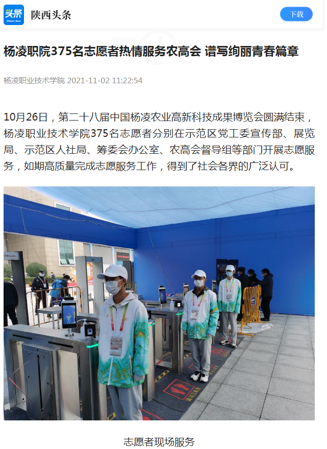 【陕西头条】杨凌职院375名志愿者热情服务农高会 谱写绚丽青春篇章