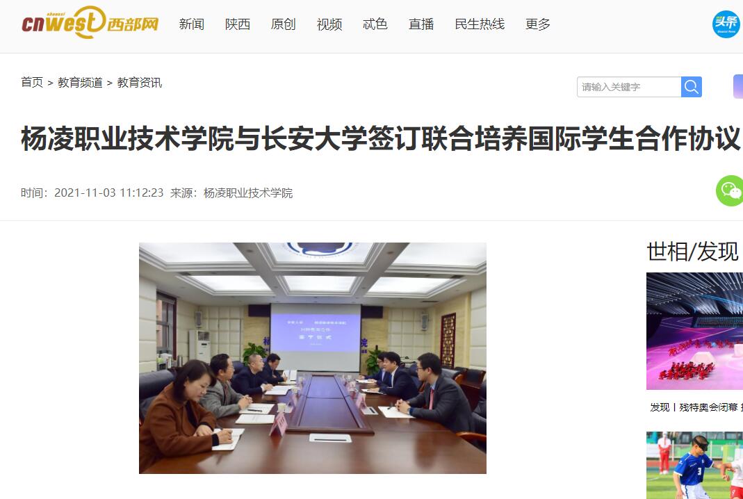 【西部网】杨凌职业技术学院与长安大学签订联合培养国际学生合作协议