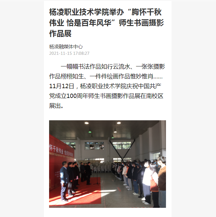 【爱杨凌】杨凌职业技术学院举办“胸怀千秋伟业 恰是百年风华”师生书画摄影作品展