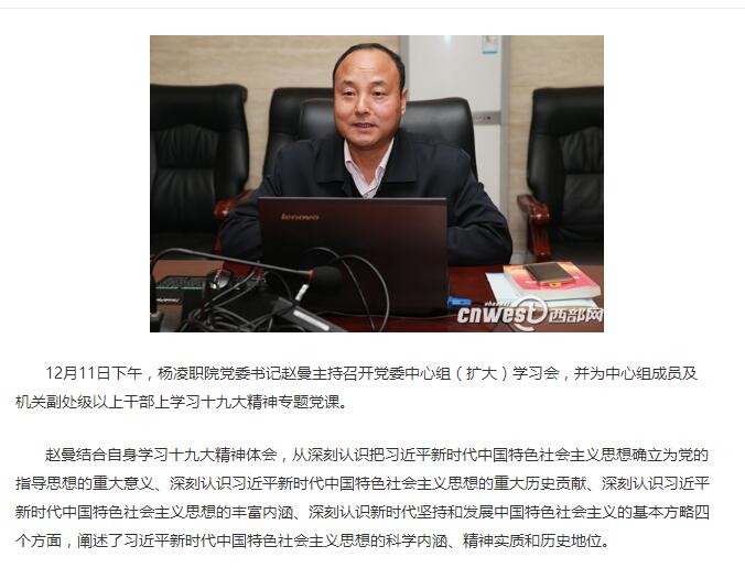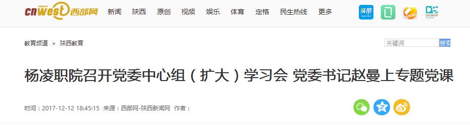 【西部网】杨凌职院召开党委中心组(扩大)学习会 党委书记赵曼上专题党课