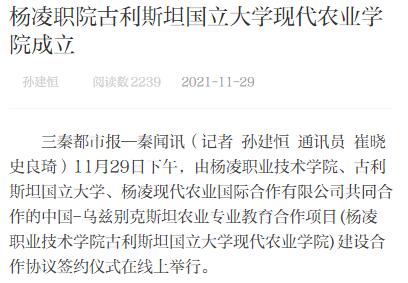 【三秦都市报】杨凌职院古利斯坦国立大学现代农业学院成立