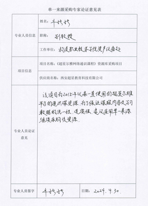 杨凌职业技术学院超星尔雅通识课采购项目,根据项目立项相关资料及专家论证意见,拟采用单一来源采购方式,该项目拟由西安超星教育科技有限公司承担。现将有关情况向潜在的供应商广泛征求意见。