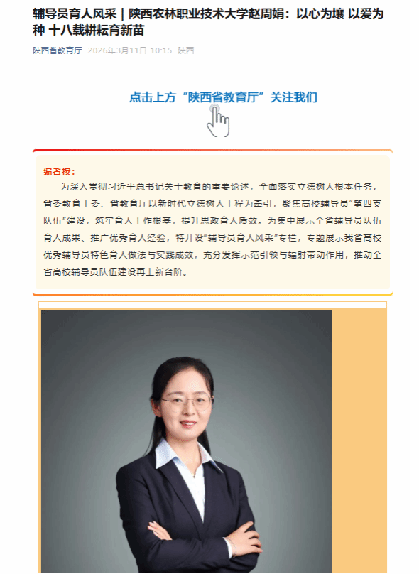 【陕西省教育厅】辅导员育人风采 | 陕西农林职业技术大学赵周娟:以心为壤 以爱为种 十八载耕耘育新苗