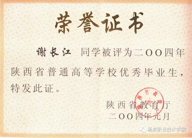 为此,谢长江在学习之余,积极参加学院、系上组织的活动,并先后担任院学生会社团部副部长,以及系摄影协会副会长、激流文学社宣传部部长、学生会宣传部部长。2004年1月,谢长江被陕西省教育厅授予“优秀毕业生”荣誉称号,这给了他极大的鼓舞,也激励他在以后的工作中不断进取、奋发向上。