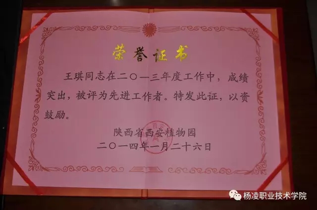 工作表现突出的王琪,连续三年获得西安植物园先进工作者荣誉称号,并被推荐为陕西省岗位学雷锋标兵和第三届“‘中国梦·青年志’——寻找陕西身边的好青年”活动创优类好青年候选人。